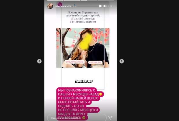 8-летняя украинка отреагировала на скандал из-за своих отношений с 13-летним блогером Как передает Politeka.net, подробности юная модель рассказала на своей страничке в Instagram. Онлайн-скандал вспыхнул на днях. Восьмилетняя модель и блогер с Киева, сообщила о том, что у нее "роман" с другим блогером, которому 13-лет.