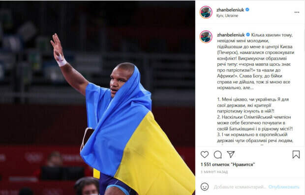 30-летний украинский спортсмен, олимпийский чемпион и депутат Верховной Рады от партии «Слуга народа» Жан Беленюк рассказал о том, как в Киеве его атаковали неизвестные парни с расистскими взглядами Совсем недавно Беленюк вернулся с Олимпийских игр в Токио, на которых завоевал для Украины золотую медаль в греко-римской борьбе в категории до 87 кг.