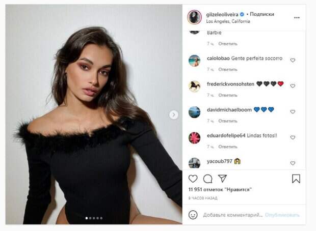 Об этом пишет Politeka.net со ссылкой на страничку знаменитости. Фанаты поставили более 10 тысяч лайков и написали комментарии: "Классно выглядишь! Действительно красиво", "Красивая красота", "Великолепная", "Оглушающая", "Ух ты! Такая великолепная", "Красота, люблю это", "Боже ты мой. Мне нужна эта рубашка", "Красивая девушка !!!", "Цветение в черном", "красиво, красиво, красиво", "любовь моя", "Всегда прекрасна!!!! Поздравляю!!! Очень за тебя рада !!!", "Королева всего", "Люблю этот гламур на тебе! Потрясающе !", "Просто фантастика". Мы писали, что супермодель Жизель Оливейра лишила дара речи сочным образом. Так, горячая брюнетка предстала в мини-платье небесного цвета, присобранном снизу. Приятным "бонусом" стал безумный вырез на полтела, от пупка до шеи. Девушка позволила публике насладиться упругой красотой, не надев лифчика. Напомним, бразильская красотка из "Victoria’s Secret" в мини-бикини не стала скрывать наслаждение. Также Politeka писала, что бразильская красотка из «Victoria’s Secret» поджарила свои "булочки" под пальмами А еще Politeka сообщала, что бразильская красотка из "Victoria’s Secret" в топе с пикантными вырезами показала свое великолепие