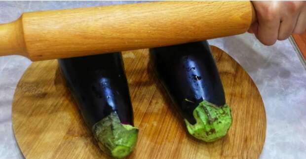 А весь секрет в том, что перед начало готовки целые синенькие надо хорошенько откатать скалкой, но не переусердствовать, чтобы не лопнули.[caption id="attachment_50756" align="aligncenter" width="650"] Раскатывание баклажанов[/caption]А дальше приступаем к делу. Что понадобится (это будет 2 порции, если надо больше, берете больше баклажанов и увеличиваете количество всех ингредиентов): 2 баклажана; 250 г любого фарша, лучше всего ассорти; 1 небольшая луковица; помидор; 1 ч.л. сладкой паприки; соль, перец; стакан томатного сока; стакан воды; 3 зубка чеснока; 1 ч.л. сушеных трав, например, хмели-сунели. Как готовитьБаклажаны размять.Луковицу и помидор мелко порезать, смешать с фаршем, добавить паприку, соль и перец по вкусу.На баклажанах аккуратно сделать надрез, в который поместить фарш равными частями.[caption id="attachment_50752" align="aligncenter" width="750"] Фарширование баклажанов[/caption]Из томатного сока, воды, специй и пропущенного через давилку чеснока сделать соус, посолить его немного.Синенькие поместить в высокую сковороду, немного полить растительным маслом, залить соусом и тушить под крышкой 30 минут.[caption id="attachment_50754" align="aligncenter" width="750"] Баклажаны с соусом[/caption]Подавать с отварным рисом.