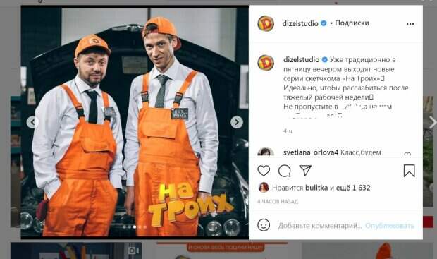 Звезды "Дизель Шоу" умеют перевоплощаться в разные образы, что доказывают их исполненные роли Поклонники в восторге от шоу и его звезд, передает Politeka.net. Стоит отметить, что "дизелевцы" снимаются в популярном скетчкоме "На троих", в котором смешат украинцев. Артисты перевоплощаются в разных героев очень убедительно и становятся почти неузнаваемыми.