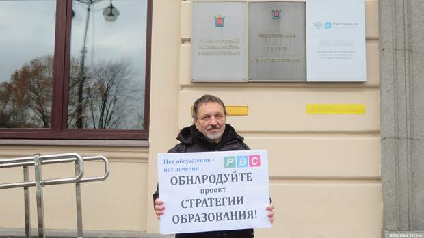 Он стоял у Общественной палаты Санкт-Петербурга с плакатом: «Нет обсуждения — нет доверия. Обнародуйте проект Стратегии образования!» Общественник пояснил, что для восстановления доверия к власти необходимо открытое обсуждение стратегических документов, от которых зависит судьба России. «Образование — это, особенно в XXI веке, стратегический параметр для выживания страны. Оно даже важнее, чем медицина. Насколько наши дети и внуки смогут стать талантливыми конструкторами, учеными, настройщиками станков с ЧПУ наконец, будет зависеть дальнейшая судьба и нас, и нашей страны. Стратегия образования — это очень хорошо, но смущает тот факт, почему ее не хотят вынести на всенародное обсуждение. Да, после развала Советского Союза я мало доверяю даже нашей собственной администрации», — подчеркнул представитель РВС. Как отметил Иванов, он понимает, что вопрос образования надо увязать с множеством процессов, которыми живет страна. По мнению активиста, надо не просто найти средства на развитие образования, но и правильно их распределять. Он также отметил, что необходимо не только реально поднять зарплаты учителям, которые сегодня в своей массе работают не на одну ставку, но и создать действующий механизм проверки их квалификации. Представитель РВС также подчеркнул важность восстановления работы школ в сельской местности. Касаясь темы патриотического воспитания, Иванов отметил, что для формирования патриотизма очень важно, какие люди будут работать с детьми. Он подчеркнул, что дети чувствуют неискренность и реагируют на нее. «Если просто ввести такой предмет, читать который будут, кто как может, и особенно если его читать будут люди, для которых эта тема не является душевно важной, то эффект на учащихся будет прямо противоположный. Так что еще стоит задача создать талантливый материал по патриотическому воспитанию и подготовить людей, которые смогут его донести до детей», — сказал Иванов. Напомним, РВС 27 октября направила официальное обращение к президенту России Владимиру Путину и в Госдуму с требованием обсудить кризисную ситуацию в сфере образования и готовящуюся «Стратегию образования до 2036 года» с настоящими представителями общественности и педагогическим составом. glavno.smi.today