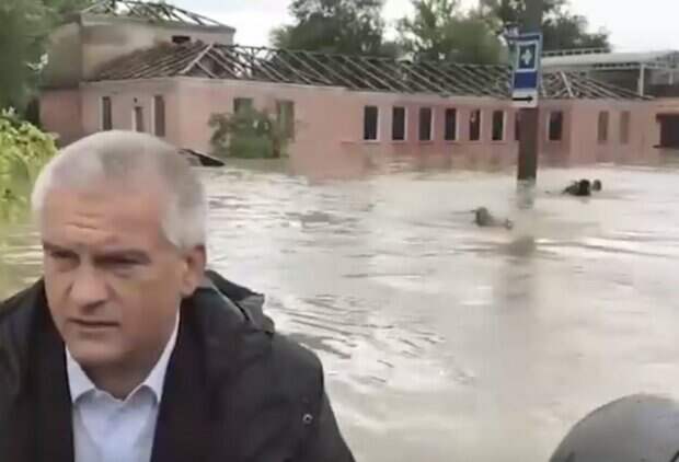 В Крыму из-за мощных ливней улицы некоторых городов превратились в реки Так, в Керчи подтоплены более 200 домов. Спасатели уже откачивают воду из помещений и переводят социально значимые объекты на резервные источники питания. Всего за ночь там выпало полторы месячных нормы осадков. В город даже приехал "глава" Крыма Сергей Аксенов.