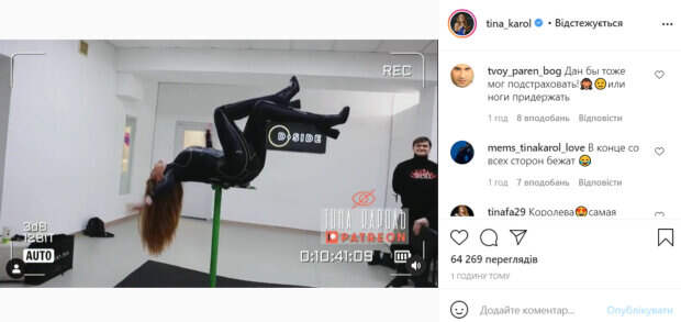 «Практически впервые при придумывании постановки танца перестала думать о том, что хореографию нужно адаптировать и упрощать - говорит @dnndbdhdhdueuk. Танец в клипе оснащен разными техниками из разных стилей. В одном из разговоров, Тина обернула наш стиль танца в оболочку «Тринити», что я считаю, достаточно близко к нашему результату», - оставила подпись к видео Тина. В комментариях оставили массу комплиментов артистке. Правда, поклонники пришли в ужас от того, как Тина чуть не поплатилась здоровьем во время репетиции. Певица едва удержалась на возвышенности и чуть не упала с высоты на пол. «Тина, я теперь понимаю, почему так хореографы из разных стран хотят с вами поработать!! Шикарная. Нет предела совершенству!», «В конце я мысленно бежала ловить Тину», «Тина, ты-огонь! Пример воспитания, силы, женственности, мудрости и любви!», «В конце со всех сторон бежат», «Дан бы тоже мог подстраховать! Или ноги придержать», - пишут люди. Напомним, что Кароль после своего скандала поразила словами о единственном мужчине: "А пока...". Как сообщала Politeka, Тина Кароль удивила личными кадрами с Даном Баланом на заснеженной улице: "Скандал". Также Politeka писала, что загадочная Кароль похвасталась колечком на том самом пальчике, фанаты ахнули: "Идеал для мужчин".
