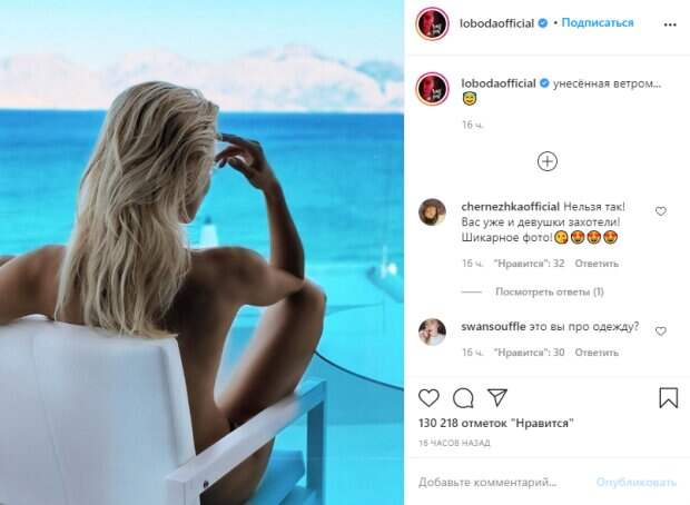 При этом мама двух дочерей также много времени уделяет тренировка по хореографии для своих концертов. Чтобы наглядно продемонстрировать то, как она привела себя в форму и даже подчеркнула похувдевшее тело, артистка просто напросто показала себя без одежды со спины. Позируя на мягком белом кресле, Светлане удалось немало удивить фанатов, не привыкших к столь пикантным фото знаменитости. «унесённая ветром...😇», - лаконично подписала новое фото Лобода. Вот что ответили пользователи Инстаграм: «А потом опять будут говорить что фото стырила 😂😂😂 с другого аккаунта😎», «я хочу эту девочку..», «Оуу! Куда же интересненькка😍?», «Boom Boom, бедные мужики😅», «Светлана,ну вы как всегда 🔥❤️Крашиха💕», «Утончённо 👏🔥😍». Напомним, Светлана с рэпером PHARAOH выпустила профеменистский клип, в котором принижают женщин. При этом тема, затрагиваемая в видеоролике в довольно остром ключе, затронула тысячи пользователей социальных сетей. Критике из-за участия в необычной работе подверглись также певица Лолита, телеведущая Ксения Собчак и Екатерина Варнава. Причем недавно Светлана на тысячи гневных комментариев отреагировала достаточно мудро - просто решила разыграть деньги в качестве приза за самый едкий отзыв, написав об этом в Инстаграм. «Вы уже прониклись BOOM BOOM атмосферой? Тогда самое время начать серию challenges. Готовы?😬 Жду самые кровожадные, едкие и токсичные комментарии под клипом на нашем YouTube-канале! Победителю- 20 тыс на карту. Поехали😂🤘», - написала артистка. Вот что ответили поклонники: «Думали что пуля дуля это дно, но тут бум бум - снизу постучали!», «Под предыдущим почитайте, там их достаточно))», «Попытка обратиться к гоголевской фантастике и абсурду? К сожалению, не удалось», «Малышка LO - жрет хейтеров 🔥», «Бывало и лучше», «Если честно ужас!Не ожидала!Слушать противно)». Напомним, Лобода решилась на кардинальную смену имиджа, фото взорвало сеть Как сообщала Politeka, Лобода засветила лишнее, хвастаясь формами без фотошопа Также Politeka писала, что Лобода в тоненьком топе не удержалась от шальных танцев