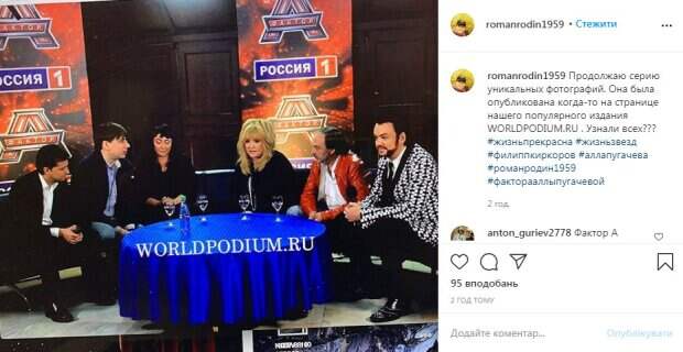 RU», - подписал снимок Родин. На фото запечатлены Владимир Зеленский, Лолита Милявская, Алла Пугачева, Филипп Киркоров, Роман Емельянов и Борис Краснов. Все они попали в кадр во время работы над первым сезоном шоу «Фактор А» в 2011 году. Тогда Киркоров и Зеленский были ведущими, а Пугачева, Емельянов и Краснов – судьями проекта. Ранее мы писали, что обнаженная Алла Пугачева в ванной показала, как они с Максимом Галкиным развлекаются в своем роскошном замке. На первом фото перед зрителями предстает сама Примадонна, которая нежится в ванной, закрывая свое обнаженное тело только пеной. В этот момент перед ней появляется ее супруг в образе капитана Джека Воробья из популярной франшизы «Пираты Карибского моря». Напомним, что Пугачева-тусовщица слилась в чувственном танце с экс-любовником Наташи Королевой: "Еще живчик". Как сообщала Politeka, развод Пугачевой и Галкина, на примадонну уже положили глаз: "Очередь из мужей...". Также Politeka писала, что Пугачева довела до психушки известного украинца, друг раскрыл детали: "Две недели лежал в...".