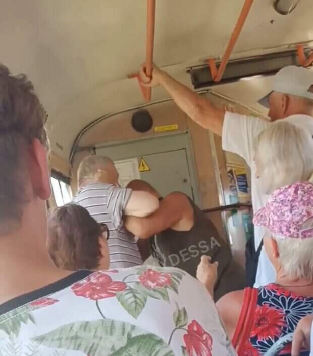 Видео драки показали очевидцы в телеграм-канал «Х. Одесса», передает Politeka.net (Чтобы просмотреть видео, доскролльте страницу до конца) Как стало известно, причиной конфлитка стало инвалидное место в салоне трамвая. «Деды подрались за инвалидное место в трамвае, хотя оба не инвалиды», - говорится в публикации. На кадрах видно, как один пенсионер наносит удары кулаком и сумкой второму пожилому мужчине, который сидит. Пожилые люди таскают друг друга за широворот под осуждающие возгласы других пассажиров. В конечном итоге один из молодых парней решил вмешаться и разнять драчунов. На этом видео прерывается. Напомним, что трамвай с пассажирами загорелся в центре Одессы: видео с места ЧП Как сообщала Politeka, трамвай загорелся в Одессе, водитель залез на дерево: видео ЧП Также Politeka писала, трамвай загорелся во время движения в Одессе, все в дыму: видео ЧП