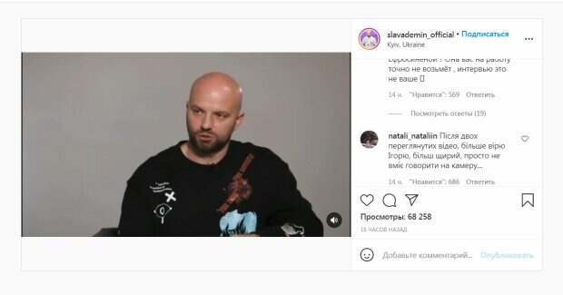 Сейчас блогеры находятся на стадии развода, в браке у них родилось двое сыновей. Слава Демин дал шанс высказаться о ситуации Игорю Пустовиту, взяв у него интервью. Об этом "любимчик" Тины Кароль рассказал в своем Инстаграм, подкрепив кадрами из интервью. (Чтобы посмотреть видео, доскролльте до конца страницы) По словам Демина, он решил сделать жесткое интервью, в котором ничего не "резалось". Однако в Сети Демина раскритиковали, в результате он просто вляпался в скандал из-за супругов. "Слава + не +, а - минус. Мне одному показалось, что вы не сохраняли нейтралитет, а максимально пытались дискредитировать Пустовит? Пусть я ошибусь, но непрофессионально