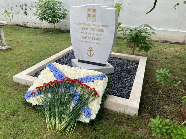 Двое моряков с «Авроры» были похоронены там в 1911 году. Дипломатическая делегация из шести человек во главе с Временным поверенным в делах России в Таиланде А. И. Дмитриченко принесла к могиле венок в виде Андреевского флага и красные гвоздики. Российские матросы с крейсера «Аврора» оказались в Бангкоке, прибыв в 1911 году в Сиам на коронацию короля Рамы VI и скончались во время стоянки в городе. Их могилу через тайские, российские и другие иностранные архивы много месяцев искали волонтеры Санкт-Петербургского общественного информационно-аналитического центра «Помним всех поименно». В поисках участвовали как граждане России, так и белорусы. Деньги на установку на могиле памятной плиты собирали среди российских граждан в Санкт-Петербурге и Таиланде. Разработал плиту скульптор из России Рафаэль Даянов, а сделали ее в Китае. Плита была торжественно открыта три года назад, церемония сопровождалась панихидой.