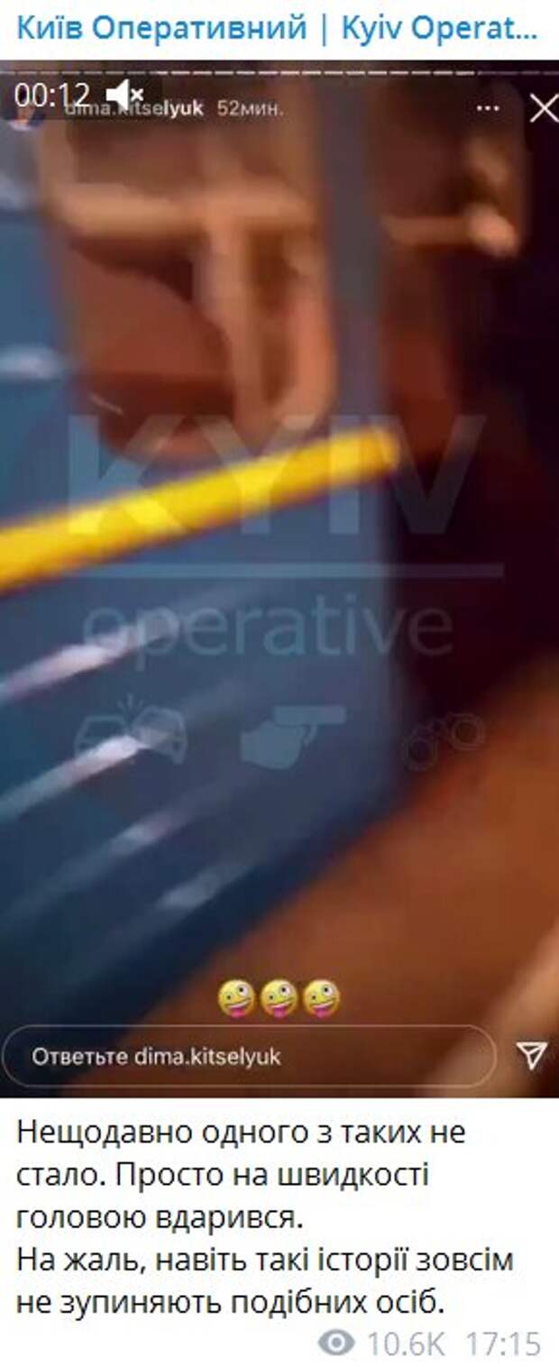 "Недавно одного из таких не стало. Просто на скорости головой ударился. К сожалению, даже такие истории совсем не останавливают подобных лиц", - говорится в подписи к видео. В комментариях поступок ребят тоже мало кому пришелся по вкусу. "А потом собирают деньги на лечение... Ничему жизнь не учит", "А потом половина города не может час попасть в метро, потому что таким ребятам головы оторвало", "Естественный отбор - он работает", "В очередной раз доказывает, что полиция ничего не делает", - пишут в комментариях. Ранее сообщалось, что под Одессой парень пострадал при попытке сделать селфи на поезде. Так, по данным правоохранителей, в Одесской области в результате поражения электрическим током на крыше товарного вагона поезда был травмирован 18-летний парень. В полиции рассказали, что парня доставили в медицинское учреждение с термическими ожогами всего тела. Напомним, развоз мусора обернулся трагедией в Киеве: под колеса попал пешеход. Ранее Politeka писала, что в Киеве пропала девушка, фото: оставила ребенка у знакомых. Также Politeka сообщала, что в Киеве загадочно оборвались жизни матери и ребенка: видео и подробности с места трагедии.