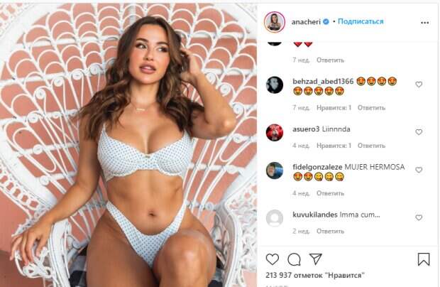 Американская фитнес-модель Ана Чери показала смелый образ в белом белье в горошек Спортсменка любит ленивый отдых и предпочитает большую часть времени проводить дома рядом с пляжем. Она посещает различные мероприятия крайне редко, а в отпуск отправляется с подругами, чтобы разрядить обстановку. При этом популярная фитнес-модель умеет показать различные образы несмотря на то, что делает большинство селфи дома.