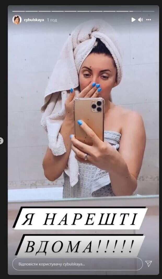Не забывает Цибульская и об Инстаграм, где делится с фанатами самым интересным. На новом видео, которое Ольга опубликовала в Инстаграм, Цибульская была в ванной. Певица обмоталась полотенцем, а еще одно накрутила на голову. "Я наконец-то дома", - написала под кадрами внизу большими буквами. "Алилуя. Боже, я дома, наконец-то. Как бы не было круто на гастролях, какие бы не были красивые отлеи и все остальное. Но вернуться домой наконец-то и помыться, обнять своих - это самое большое счастье, ура", - сказала на камеру Оля Сумская, стоя перед зеркалом. Напомним, кума Дзидзьо Цибульская в платье с разрезом разлеглась на полу перед Решетником А еще Politeka сообщала, что кума Дзидзьо Цибульская удивила признанием о трудностях с мытьем в работе артиста Также Politeka писала, что кума Дзидзьо Цибульская перевоплотилась из хозяюшки в халате в гламурную красотку
