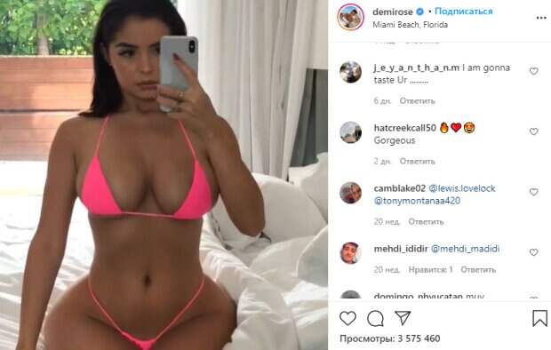 При этом она часто подчеркивает, что не делала пластики и ей есть чем гордиться. Своими достоинствами модель также хвастается едва ли не каждый день, а также показывает, как веселится на съемках в раках рекламы или продвижения какого-либо бренда одежды. Девушка снимается в открытых и неприличных бикини, тем не менее, ей это нравится, ведь она может привлечь еще больше внимания фанатов к себе. Как видно на представленных кадрах, Деми обладает необычной внешностью с действительно большим бюстом и широкими бедрами. Выставляя их напоказ, Роуз получает сотни восхищенных комментариев. Вот как реагируют в сети на образ Деми фанаты, которая с трудом скрыла интимные места клочками ткани: «У нее всегда сезон бикини