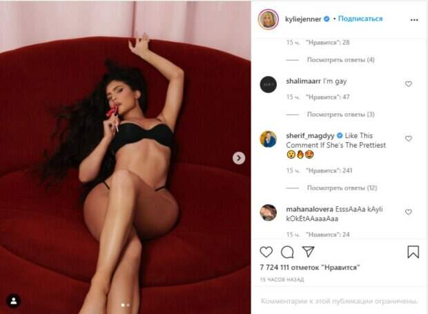 Одной из таких стала тематическая съемка ко Дню святого Валентина. Причем сделала это Кайли не одна, а вместе с другими членами семейства Дженнер — Кардашьян. Девушки выпустили капсульную коллекцию накануне праздника всех влюбленных, поэтому лично ее прорекламировали на своих разных по типу фигурах. Кайли, Кендалл и Ким сменили несколько образов. Кайли достался черный комплект белья и минимум деталей. Причем позировала звезда с конфеткой в руках для привлечения внимания. «Это особенное; Золотая рыбка? Исполни желание; Хотел бы я быть тем леденцом; счастливый леденец; девушка чертовски хороша; ты просто вау !!!! как что