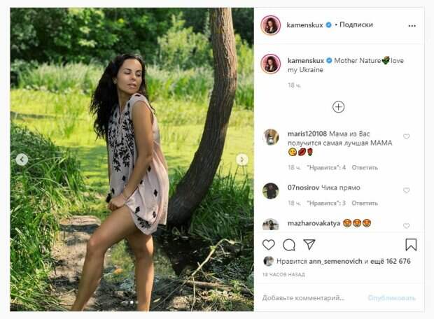 net со ссылкой на страничку знаменитости. На втором фото уже показала себя Тина Кароль. Звезда позировала среди соснового леса в платье. Певица соблазнительно выгнулась и задрала частично свой наряд, делая фото максимально горячим. Замыкает тройку Ани Лорак. Красотка уже себя показывала среди зимнего леса. Звезда была в куртке и штанах, а образ дополнила очками и перчатками. Певица в дерзкой позе стояла перед фотографом, показывая на фоне природу леса. На следующем снимке уже Дарья Астафьева. Красотка была в прозрачной сеточке и лежала среди деревьев на траве. Звезда не стеснялась показать свои пышные формы, которые практически ничем не были прикрыты. Замыкает топ Екатерина Никитина из "Квартал 95". Девушка была в топе и юбке, а волосы оставила распущенными. Красотка смеялась на камеру, стоя возле лесной реки. Фото вышло очень органичным и свежим. Мавка - лесная русалка, которая существует в украинской мифологии. Очень похожа на русалку, ведь в образе девушки без одежды с длинными волосами. Напомним, Каменских похвасталась идеальными ножками в экстра мини, горячие кадры А еще Politeka писала, что соблазнительная Каменских в коротеньких шортах призналась, чего хочет больше всего Также Politeka сообщала, что страстная Каменских в прозрачном наряде эффектно присела на капот авто