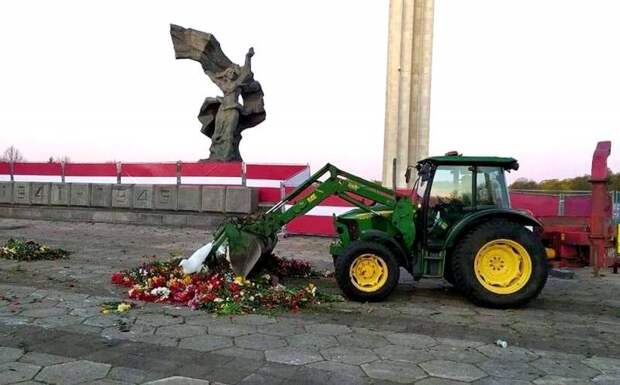 В ходе празднования Дня Победы в Риге жители латвийской столицы возложили горы цветов к монументу Освободителям в Пардаугаве. Однако уже утром следующего дня бульдозер снес все принесенные цветы.