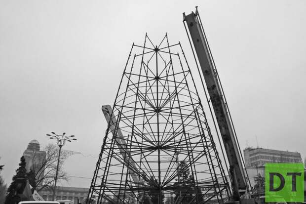 В столице Донецкой Народной Республики к завершающему этапу подошёл монтаж главной новогодней ёлки, передаёт корреспондент «Донбасс Сегодня». Уже установлена металлическая несущая конструкция, которая позже будет украшена новогодними игрушками и гирляндами. Также будет установлено новогоднее освещение, а также другие зимние атрибуты на площади Ленина в Донецке.