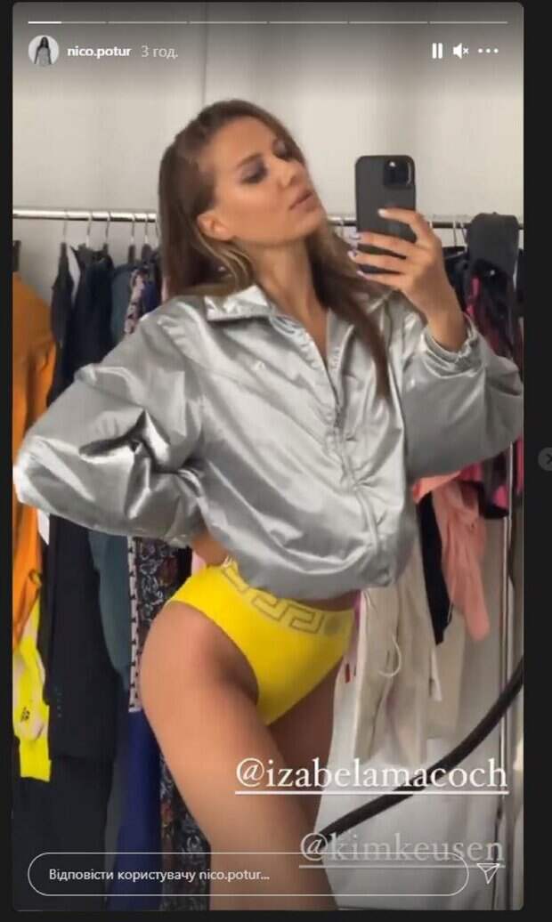 Девушка не стесняется себя показать, демонстрируя иногда довольно провокационные образы. Потуральски часто публикует новые кадры в Инстаграм, чтобы подогреть интерес к своей персоне. Николь в этот раз показала в сторис, как выглядят шикарные ножки. Девушка была в кофте и желтых трусиках, за которые потянула рукой. Как можно заметить, Потуральски позировала в гардеробной, снимая свое отражение в зеркале. Фанаты не ставили лайки и не писали комментарии, но так и хочется добавить: "Так и хочешь комплимент, роскошная крошка". Мы писали, что известная модель Николь Потуральски, которая закрутила роман с Брэдом Питтом, похвасталась знойным образом. Знаменитость сфотографировалась в комнате, позируя в очень короткой блузке, которая обнажила ее плоский животик и подчеркнула природную стройность. Судя по всему, Николь Потуральски не надела под низ бюстгальтер. Образ дополнила клетчатая шляпа и роскошная прическа с распущенными локонами. Напомним, экс-любовница Брэда Питта неприлично выгнулась, восхитив видом декольте А еще Politeka сообщала, что экс-любовница Брэда Питта раззадорила своими сочными "ягодками", распахнув рубашку Также Politeka сообщала, что экс-любовница Брэда Питта в "небесном" бикини заставила мужчин пускать слюнки