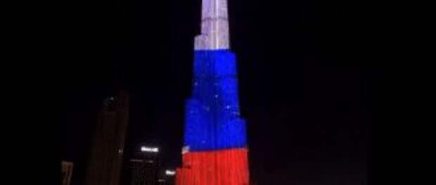 Вчера самая высокая башня мира в Дубае окрасилась в цвета российского флага. Это произошло