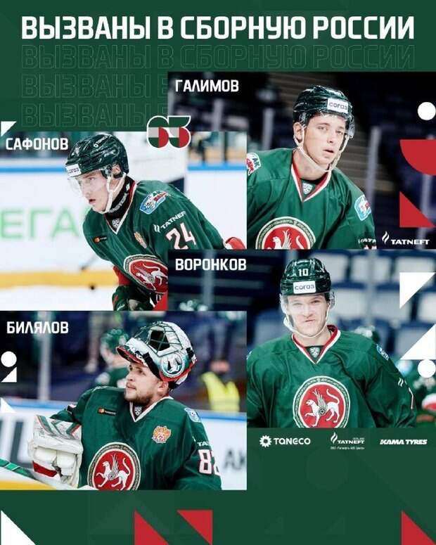 Четверо хоккеистов «Ак Барса» — Тимур Билялов, Артем Галимов, Дмитрий Воронков и Илья Сафонов — вызваны в сборную России на Кубок Карьяла. Об этом сообщается в Telegram-канале клуба. Кубок Карьяла, первый в сезоне этап Евротура, пройдет в Хельсинки с 11 по 14 ноября. Фото: t.me/hc_akbars Главный тренер - Олег Браташ, ему будут помогать Сергей Зубов, Александр Титов, тренер вратарей Андрей Комиссаров и тренер-консультант Олег Знарок.