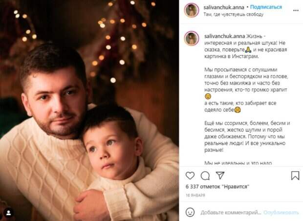 Счастливая Анна держала на руках младшего из сыновей, пока старший проказничал рядом. Фото вышли уютными и живыми. Неподдельные эмоции и улыбки придали им особого настроения. Ранее Анна делилась в интервью, что уже на восьмой день после знакомства с будущим мужем, поняла, как сильно хочет от него сына. "Я увидела его детскую фотографию и заплакала. Сказала: "Боже, неужели я встретила своего мужчину?". Я так долго к этому шла... Я за 29 лет (тогда мне было 29) не встречала еще мужчину, от которого хотела была родить сына", - признавалась она. Саливанчук решила посвятить детям трогательное стихотворение в подписи. "Есть в слове счастье — слово «сыновья», Подарок свыше, что безумно сладок! ⠀ Мои мальчишки — радость бытия, Как два крыла мне от судьбы в награду. ⠀ Течёт надёжная в их жилах кровь — И благородством жизнь не обделила, Спасибо вам, мальчишки, за любовь, Что станете для меня достойным тылом" Пользователи кинулись обсуждать увиденное: "Какие вы красивые)) Анечка