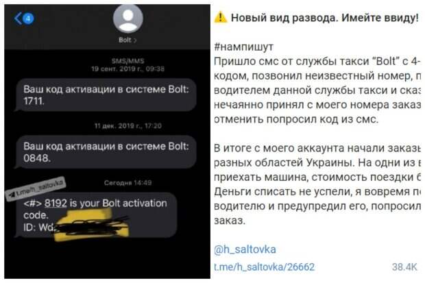 "Пришло смс от службы такси Bolt с 4-х значным кодом, позвонил неизвестный номер, представился водителем данной службы и сказал, что нечаянно принял с моего номера заказ, и чтобы его отменить, попросил код из смс", - рассказал парень о том, как его развели мошенники. После того как он сообщил этому якобы водителю свой смс-код, с его аккаунта начали заказывать поездки в разных областях Украины. Одна из них была оценена в 7 тысяч гривен. Деньги списать не успели, ведь пострадавший клиент вовремя позвонил водителю и предупредил его, попросив отменить заказ. Также ранее сообщалось, что мошенники звонят с незнакомых номеров и бросают трубку, вынуждая потенциальных жертв первыми идти на контакт и перезванивать им. Если человек перезванивает сам, злоумышленники начинают использовать традиционные методы социальной инженерии: представляются сотрудниками службы безопасности банка, пытаются выведать конфиденциальные данные пользователя или убедить перевести деньги на счета мошенников. Напомним, украинцам вешают долги в десятки тысяч и блокируют счета, кому нужно поспешить. Как сообщала Politeka, мошенники под видом соцработников промышляют в Одессе, кто под ударом. Также Politeka писала, карантинные 8 тысяч, в Нацполиции срочно предупредили о новой схеме обмана.