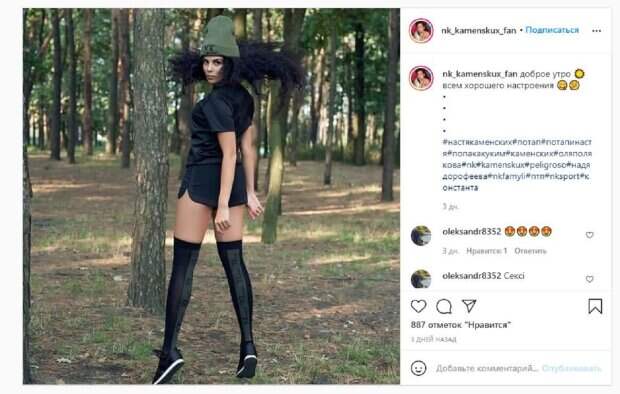 Этот раз не стал исключением, один из пользователей решил вспомнить прогулку Каменских в лесу. Красотка была в мини и чулочках, подпрыгнув для кадра. "Доброе утро. Всем хорошего настроения", - написал администратор группы. Фанаты поставили почти тысячу лайков под снимком и засыпали Настю комплиментами: "Соблазнительная", "Классное фото!", "Красотка", "Ух ты, какая фея лесная", "Девочка, ты бомба", "Спасибо и Вам хорошего настроения, прекрасная Настя Каменских, красивая Настя Каменских", "О боже, в чулках и в лесу, волка видимо поджидает,нужно было вообще раздеться, платье длинное". Сообщалось, что певица Настя Каменских старается идти в ногу со временем, подражая молодежи, но что-то пошло не так. На одной из фан-страничек 33-летней звезды в Инстаграм опубликовали видео с Настей, танцующей в пижаме. Настя предстала без косметики и прически, в несколько растрепанном виде. Особенным бонусом стало то, что звезда "забыла" о нижнем белье. Напомним, Каменских после больницы и капельниц блеснула аппетитными объемами на пляже под пальмой А еще Politeka писала, что "беременная" Каменских поиграла глазками, умчав от Потапа с лучшей подругой Также Politeka сообщала, что изможденная Настя Каменских оказалась в больнице под капельницей, что произошло