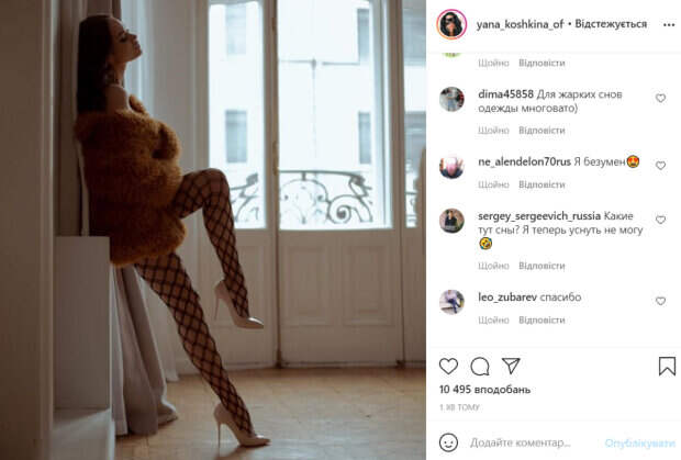 Российская актриса Яна Кошкина, которой приписывают роман с Гариком Харламовым, показала себя в откровенном образе Как передает Politeka.net, у себя в Инстаграм пышногрудая красотка опубликовала весьма провокационный кадр. Кошкина была одета в колготы в сеточку и туфли на каблуках. Сверху она набросила шубку, под которой, вероятнее всего, ничего не было.