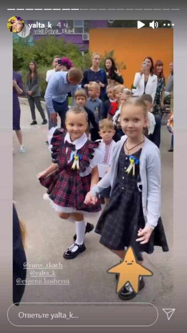 В частности, Ксения опубликовала кадры праздника в сторис. Как оказалось, Серафима пошла в школу вместе с дочкой Юрия Ткача и его супруги Виктории, Елизаветой. Обе семейные пары выбрали учебное заведение "KYIV INNOVATION SCHOOL", которое находится в Днепровском районе. Ксения опубликовала кадры, как проходила школьная линейка. А также позже сделала пост с семейными фото. "С 1 сентября!