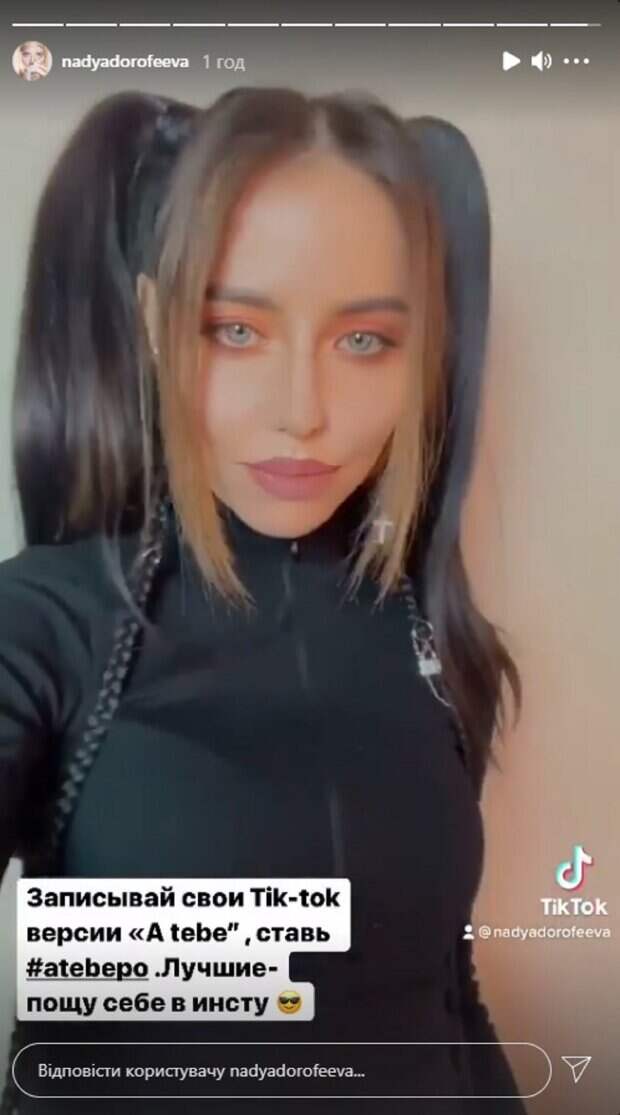 В своем сторис в Инстаграм Надя предложила поклонникам записать свою версию "А тебе" в TikTok. 26 февраля Надя "слила" фрагмент трека "А тебе", где предстала в новом образе. В новом сторис Надя надела темносерую олимпийку под горло, прической послужили два хвостика, а мейкап сделала с акцентов на глаза. Надя использовала розовые тении в тон такую же матовую помаду, которые подчеркнула безупречные пухлые губы Дорофеевой. "Записывай свои Tik-Tok версии "A tebe", ставь #atebepo. Лучшие - пощу себе в инсту", - предложила звезда. При этом Надя куражилась и гримасничала под свой новый трек, используя незамысловатые фильтры. Новый трек по словам певицы, станет одним из треков своего сольного мини альбома ЕР. Подробности, сколько треков войдет в новый альбом, а также какие это будут песни, пока неизвестно. Звезда хранит тайну. Единственное, что стало известно настырным фанатам, что это первая музыкальна стори ЕР. После разрыва с Позитивом Надя Дорофеева пытается найти свой образ. Она пытается измениться внешне, выбирая наряды похожие на те, которые покорили фанатов. К примеру, майку-алкоголичку, в которой сняла фрагмент нового трека Надя можно заметить на певце Максе Барских, а "водолазка" темно-серого цвета уж очень напоминает костюм Тины Кароль из клипа на песню "Скандал". Напомним, что Дорофеева повергла в шок своим домашним видом с жижей на лице и без прически: "Возбудились?" Как сообщала Politeka, Дорофеева после разрыва с Позитивом потрясла преображением, Дантес с Астафьевой не удержались Также Politeka писала, что растрепанная Дорофеева расстегнула кофточку, заманив в оковы ночи: «С тобой так весело…».