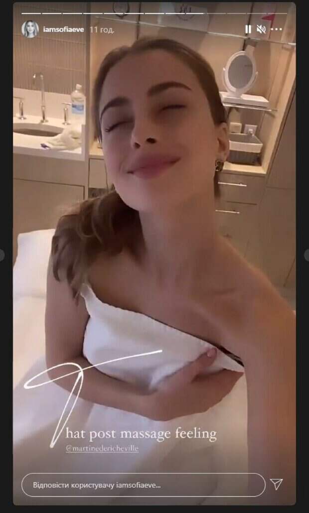 Известная модель Соня Евдокименко, которая является внучкой легендарной артистки Софии Ротару, показала, как релаксирует На фото Соня показалась без одежды и белья, прикрываясь только полотенцем. Евдокименко, как можно понять, отправилась в массажный кабинет, где предалась наслаждению от мастеров своего дела.
