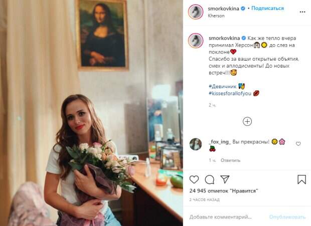 Кошмал, как известно, сейчас вместе с коллегами гастролирует со спектактлем "Девичник". Особенно ее тронула публика в Херсоне, о чем актриса не смогла не упомянуть. "Как же тепло вчера принимал Херсон