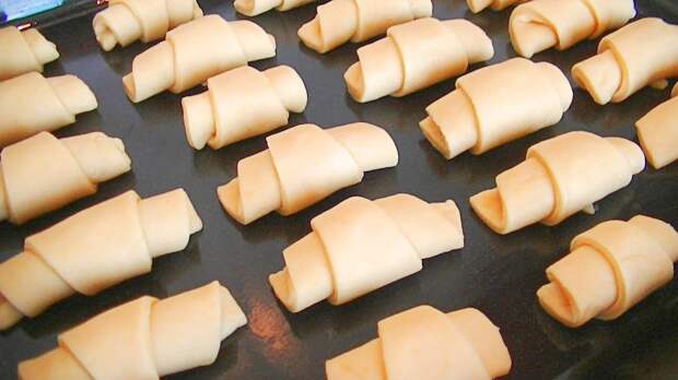 Список ингредиентов: Мука +-300 г Яйцо Сливочное масло 100 г Сметана 150 г Сода 1/2 ч. л. Сахар 1/2 стакана Щепотка соли Вареная сгущенка Для начинки также подойдут сухофрукты, густое варенье.Рогалики получаются мягкими и нежными.Рекомендуется класть немного начинки, чтобы она во время выпечки не вытекала.