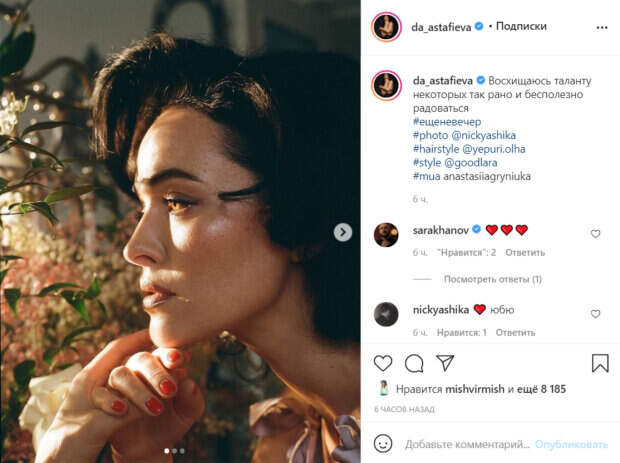 Экс-участница группы "Nikita" и известная певица Даша Астафьева поразила красотой на новых фото Даша Астафьева является популярной певицей. Также она является моделью и телеведущей. Девушка прославилась своим участием в группе "Nikita", в состав которой она вошла вместе с Юлией Кавтарадзе. Артистка активно ведет социальные сети и делится с поклонниками моментами из жизни.