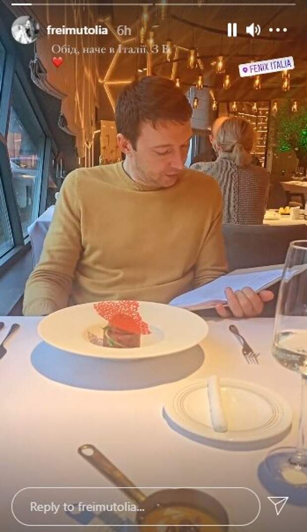 Украинская телеведущая Ольга Фреймут показала роскошный отдых со своим мужем Владимиром Локотко Как сообщает Politeka.net, звезда шоу "Танці з зірками" вместе с генеральным продюсером "Нового канала" отправилась пообедать в один из киевских ресторанов итальянской кухни. Знаменитость выложила кадры их выхода в свет на странице в соцсети "Инстаграм".