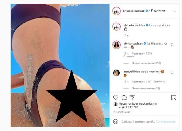 net со ссылкой на страничку знаменитости. "Я люблю свои полосы", - написала под фотографией Хлои. Сразу прокомментировала снимок сестра модели - Ким: "Для меня это талия" Фанаты поставили миллионы лайков и написали комментарии: "Мамочка, правда", "Это тело...", "девушка сила нам, дамы", "Это тело для меня", "Хорошие полосы", "За их показ", "ДА! Покажи им королеву! Я так горжусь тобой", "Могу я одолжить это тело !!!!", "А где чайки", "это честно цели тела", "Вот это женщина", "Полоски не вижу! Лол", "Это единственное, что для тебя естественно", "Вам нужно нанять лучшего фотошопера", "Пост "позитивный для тела", но так сильно отредактированный ... Я не могу". Мы писали, что известная модель Хлои Кардашьян показала себя в необычном образе. На фото красотка позировала в пиджаке, который задрала одной рукой. Под ним можно увидеть боди, а снизу белые сапоги выше колена. Хлои стояла у стены, хвастаясь идеальными ножками. Напомним, Хлои Кардашьян приспустила наряд и задрала ножку, завлекая роскошью А еще Politeka писала, что полностью раздетая Хлои Кардашьян соблазнила фанатов идеальными изгибами Также Politeka сообщала, что 40-летняя Ким Кардашьян в купальнике дала фору младшей сестре, кадры соблазна