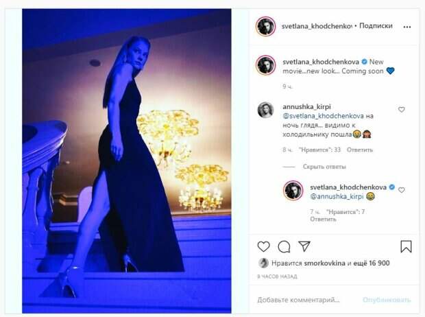 Об этом пишет Politeka.net со ссылкой на страничку знаменитости. "Новый фильм ... новый вид ... Скоро выйдет", - написала красотка. Фанаты поставили почти 20 тысяч лайков и написали комментарии: "На ночь глядя... видимо к холодильнику пошла", "Вы лучшая! Люблю и восторгаюсь!", "Взгляд тигрицы. Невозможно пройти мимо", "Прекрасная женщина мира", "Как всегда шикарна )", "Великолепная женщина", "Кого взглядом убили, Светочка??". Сообщалось, что звезда фильмов "Квартал 95", 37-летняя актриса Светлана Ходченкова впечатлила ярким образом на красной дорожке кинофестиваля. Актриса выбрала весьма необычный образ для появления на фестивале. Она отказалась от вечернего платья, отдав предпочтение брючному костюму и кедам от модного дома Dior. Напомним, эффектная блондинка из фильмов "Квартал 95" выделилась на фоне подруг неожиданным образом А еще Politeka писала, что блондинка из фильмов «Квартала 95» ошеломила новым образом роковой женщины Также Politeka сообщала, что аномально исхудавшая звезда фильмов "Квартал 95" потрясла нелепым видом