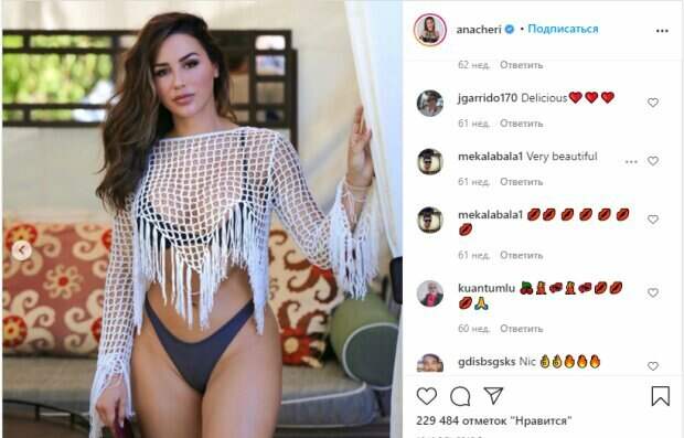 Фанаты знаменитости пришли в восторг от увиденного. «Вот это дикая выходка. Но мне нравится», «невероятная красота. Это можно смотреть бесконечно», «безупречные персики. Супер», «пять принцесс. Одна лучше другой», - пишут они. Как сообщалось до этого, модель Ана Чери поделилась пикантными фото из дома. Фитнес-красотка гордится своей фигурой и подчеркивает, что она против диет. Несмотря на то, что некоторые критикуют в Инстаграм ее фигуру, Ана не обращает на это внимание и продолжает заниматься в привычном режиме. Так как девушка любит себя, она зачастую снимается в белье или откровенных костюмах в специальных фотосессиях. Ана подчеркивает достоинства каждый раз по-разному, используя всевозможную обстановку, украшения, смены имиджа и даже косплеит некоторых супергероинь (Супер-женщина, женщина кошка и другие). В этот раз девушка подразнила видом в прозрачной накидке и черно-сером белье. Она придала своему образу дерзости благодаря сетчатой накидке, поэтому акценттировала на ней внимание. Напомним, Ана Чери забыла про стыд и сдавила аппетитные размеры прямо на камеру А еще Politeka писала, что соблазнительная Ана Чери порадовала, обтянув свой упругий "орешек" экстра мини Также Politeka сообщала, что Ана Чери поиграла на камеру своими "ягодками" в невидимом белье