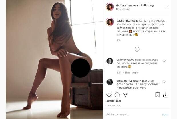 Красотка села обнаженными ягодицами на самый край крышки и приподнялась на носочках, показав стройные ноги во всей красе. Бывшая участница "Холостяка" положила одну руку на колено, а другой прикрыла открытую грудь, использовав еще и собственные волосы. Она показала томное выражение лица, которое как нельзя подходит к такому откровенному образу. "Когда-то я считала, что это мое самое лучшее фото, но сейчас мне оно кажется ужасно пошлым