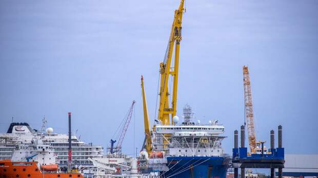 После краткой стоянки в немецком порту Мукран судно для подачи труб "Северного потока - 2" возвращается в Калининград.