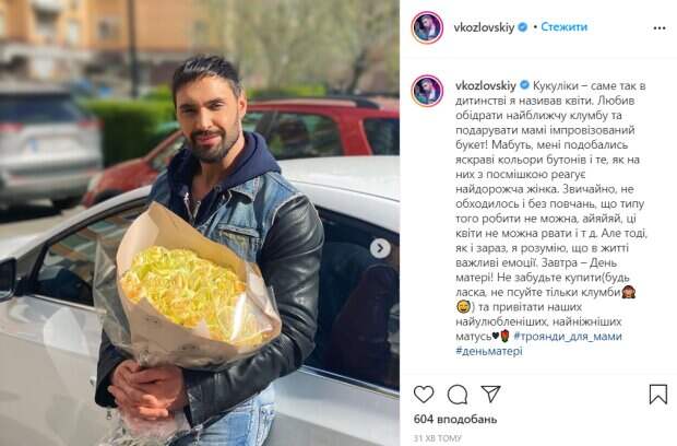 Перед камерой артист появился в джинсовых штанах и джинсовой куртке с кожанными рукавами. "Кукулики – именно так в детстве я называл цветы. Любил ободрать ближайшую клумбу и подарить маме импровизированный букет! Видимо, мне нравились яркие цвета бутонов и то, как на них с улыбкой реагирует самая дорогая женщина. Конечно, не обходилось и без поучений, что типа того делать не можно, айяйяй, эти цветы нельзя рвать и т д. Но тогда, как и сейчас, я понимаю, что в жизни важны эмоции. Завтра-День матери! Не забудьте купить (пожалуйста, не портите только клумбы) и поздравить наших самых любимых, нежнейших мамочек♥️", - пописал фотографию Козловский. Фолловеры артиста тут же принялись обсуждать его новое фото и невероятную любовь к матери. "Дуже гарні кукуліки