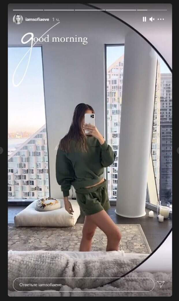Известная модель Соня Евдокименко, внучка легендарной украинской певицы Софии Ротару, показала, как встречает утро На фото звезда позировала в шортиках и кофте. Красотка стояла перед зеркалом, закрыв лицо телефоном. Соня выставила одну ножку, а после этого задрала руку, взявшись за волосы. Кофта оказалась слишком узкой, поэтому задралась тоже, оголив плоский животик девушки, благодаря чему кадр получился даже немного пикантным.