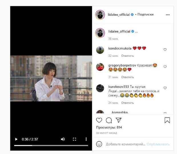 Певица также активно ведет социальные сети, продвигая свое творчество. В этот раз Лида решила дать интервью, ответив на вопросы. "В сфере шоу-бизнеса ходят слухи о том, что у тебя есть спонсор. Как ты реагируешь на подобные домыслы?", -был задан вопрос. "Круто. Это приятно. Меня никто не спонсирует и особенно сейчас все что происходит в моей жизни, мы все делаем усилиями тех людей, которые сейчас пришли на помощь и помогают это делать", - сказала Лида. Фанаты посмотрели ролик сотни раз и написали комментарии: "Ты крутая Лида!...заметил тебя на голосе..и слежу..", "Вау, продолжение", "Красивая". Напомним, Melovin с партнершей на "Танцях з зірками" покажут настоящую страсть А еще Politeka писала, что экс-подопечная Монатика заворожила известного красавца, кадры говорят сами за себя Также Politeka сообщала, что экс-подопечная Монатика в мини-шортиках показала, как выглядят идеальные ножки
