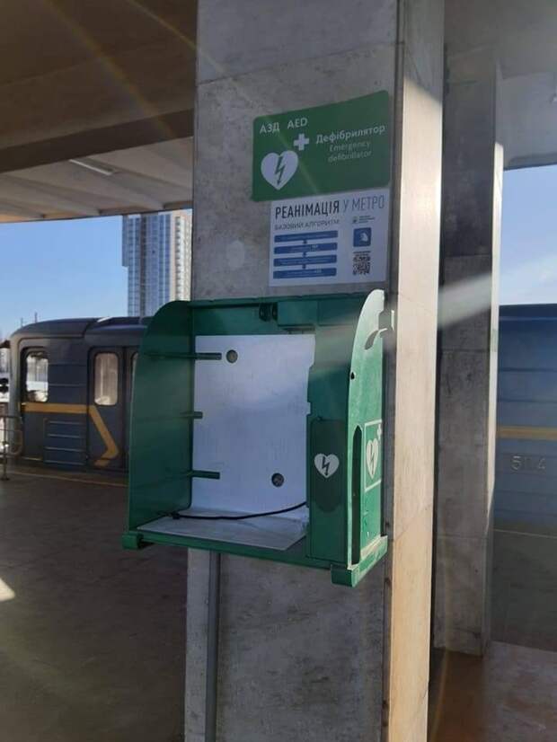 На одной из киевских станций метро неизвестный пытался украсть дефибриллятор, но лишь повредил бокс и в итоге скрылся с места.Об этом сообщает пресс-служба метрополитена Киева.На станции метро "Лесная" неизвестный хотел украсть дефибриллятор, однако сработала сигнализация и вор убежал. Как отметили сотрудники метрополитена, бокс хранения значительно поврежден.