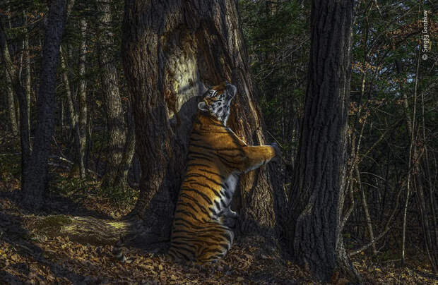 Отобранные из более чем 49 000 работ со всего мира, они были представлены во время онлайн-церемонии награждения, которая транслировалась в прямом эфире из Музея естественной истории в Лондоне 13 октября. Кейт Миддлтон, герцогиня Кембриджская и покровительница музея, объявила Сергея Горшкова фотографом года за его великолепный снимок «Объятия» амурской тигрицы, обнимающей древнюю маньчжурскую ель на Дальнем Востоке России.