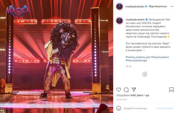 А вот угадывать, кто из участников скрывается за маской будут несменные судьи Оля Полякова, Андрей Данилко, Дзидзьо, Олег Винник и Настя Каменских. В соцсетях разгорелись бурные споры по поводу человека, который скрывается за маской черного Льва. И это не спроста, ведь Андрей Данилко, уверенный, что Львом стал Александр Пономарев, и даже поспорил на свою квартиру в центре Киева с другими звездными детективами. Тем временем, пользователи сети и многие зрители считают, что в костюме Льва выходит на сцену лидер "Бумбокс" Андрей Хлывнюк. Так что Данилко запросто может проиграть спор и потерять недвижимость. На странице шоу "Маска" в соцсети Instagram опубликовали яркое фото участника в маске Льва, а в подписи к кадру сообщается, что Данилко серьезно занервничал. "Легендарный Лев на сцене шоу "Маска". Андрей Михайлович начинает нервничать, ведь может остаться без квартиры, если под маской нашего героя не Александр Пономарев. Кто скрывается под маской Льва? Очень интересно увидеть ваши варианты в комментариях". Пользователи практически одноголосно уверенны, что в костюме Хлывнюк. Напомним, Нападение на Андрея Данилко, рядом оказалась разъяренная Полякова: "Отойди от него!". Как сообщала Politeka, Звездной участнице шоу "Маска" понадобилась срочная помощь, Полякова не выдержала: "Ей плохо! " Также Politeka писала, Самоуверенный Данилко оказался на грани потери своих хоромов на Крещатике: "Очень жаль...".