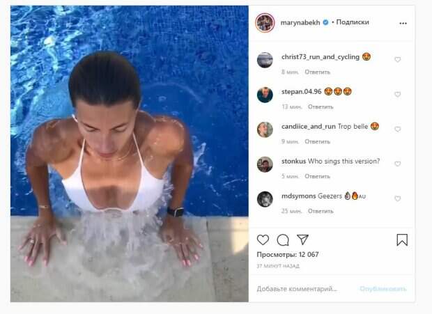 Известная украинская легкоатлетка Марина Бех-Романчук показала смелый образ, порадовав армию фанатов На кадрах красотка позирует в белом купальнике, находясь у кромки бассейна. Бех была полностью мокрой и на кадрах подтягивалась, демонстрируя влажную грудь, которую при таком удачном ракурсе можно идеально рассмотреть.
