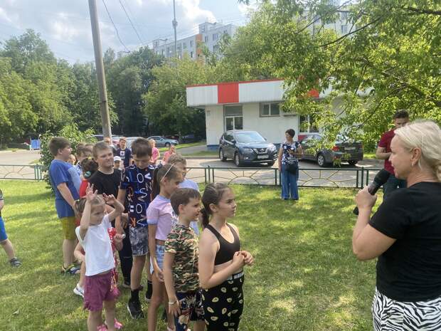 6 июля педагоги ГБУ «ООЦ им. Моссовета» провели во дворе дома на ул. Вешняковской, д. 29Д, детскую спортивную викторину под названием «Веселая игра — разминка». Мероприятие прошло в рамках программы «Мой район». Организаторы приготовили различные задания, чтобы разогреть участников перед началом игры.