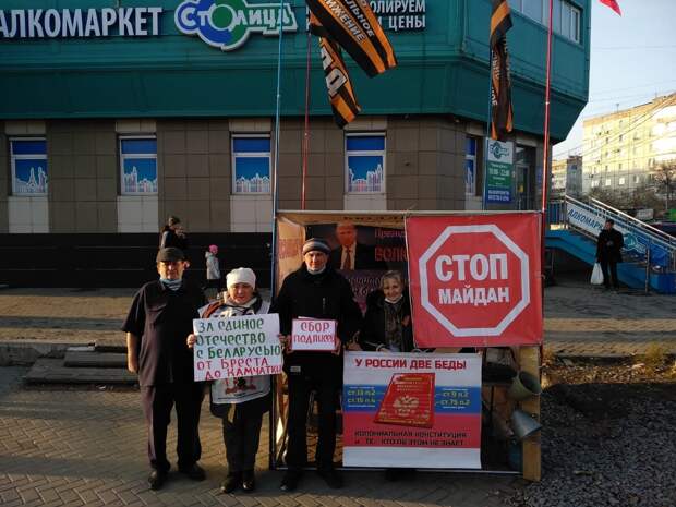 Хабаровские активисты Национально-освободительного движения (НОД) выставили сегодня пикет против уже традиционного оппозиционного шествия за освобождение бывшего губернатора края Сергея Фургала. Несколько нодовцев кричали «Стоп Майдан!» и «Не допустим разрушения государственности России!», когда колонна проходила мимо пикета.