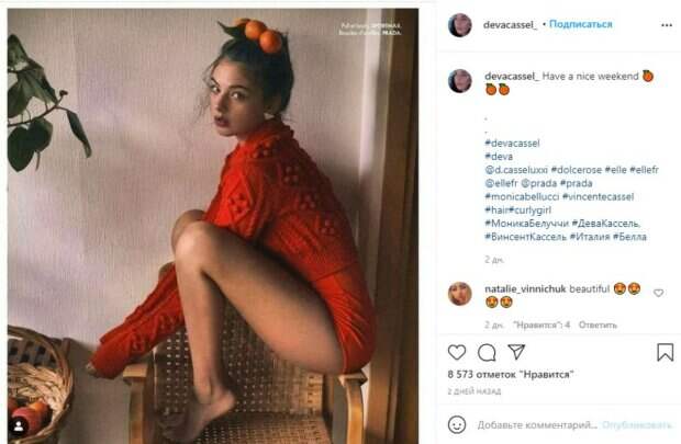 Кадры с девушкой, позирующей сразу в нескольких провокационных нарядах, не оставили никого равнодушными, ведь юная модель не только очень похожа на свою маму – легендарную модель, но еще и превосходит многих других моделей своей сияющей красотой. Отметим, что на фотосессии родители девочки также присутствовали. Кудрявые волосы Девы на показанных фото распущены, а на лице заметен легкий макияж. Скромные и стильные наряды подчеркнули также и фигуру Кассель-младшей. «Хорошая ягода